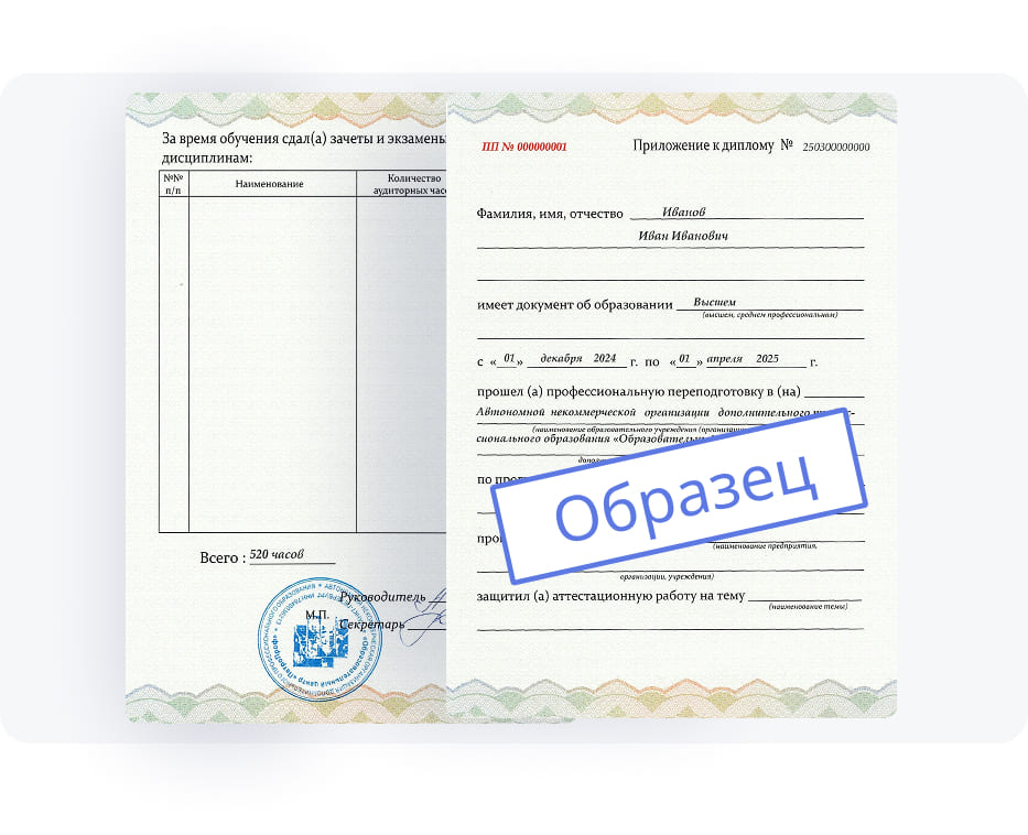 Диплом о дополнительном профессиональном образовании, полученный в нашем центре «ПетроПроф», признается всеми образовательными учреждениями и работодателями на территории России. То есть документ с нашей печатью открывает перед вами новые карьерные перспективы и возможности для профессионального роста, в том числе если вы работаете в государственном учреждении.